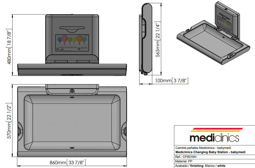 Mediclinics - Babyverschoontafel horizontaal wit Babyverschoontafel horizontaal wit.Voor wandmontage.Gemaakt van bacterie resistent kunststof.Inclusief afsluitbare dispenser voor verschoonpapierdoeken.Met antibacteriële Biocote® bescherming.Met nylon veiligheidsgordel.Met aan weerskanten ophanghaken voor uw persoonlijke bezittingen.Aanbevolen installatiehoogte:800 mm vanaf het laagste punt700 mm vanaf het laagste punt op minder valide toiletten.Voldoet volledig aan de EN 12221-1 en EN 12221-2 richtlijnen.Laat uw baby onder geen enkele omstandigheid alleen of buiten uw bereik achter op de babyverschoontafel. Niet geschikt voor montage op gipsplaten of holle muren!! Veel mensen baby's of jonge kinderen zullen u dankbaar zijn als ze een babyverschoontafel in de toiletruimte zien hangen. Naast gemak voor de ouders is veiligheid en hygiëne voor kleine kinderen van groot belang. De babyverschoontafel van Mediclinics is daarom gemaakt van bacterie resistent kunststof en heeft Biocote® bescherming. De babyverschoontafel wordt geleverd inclusief afsluitbare dispenser voor verschoonpapierdoeken en is voorzien van een nylon veiligheidsgordel. De tafel is voorzien van handige ophanghaken voor uw persoonlijke bezittingen, gemakkelijk voor de ouders. Wilt u uw bezoekers met jonge kinderen blij maken? Vraag dan een offerte aan! Maak het gemak optimaal door met een pictogram aan te geven dat er een babyverschoontafel is. Bekijk hier een video over dit product. 2 jaar na aankoopdatum is een hoogwaardige en duurzame oplossing voor mediclinics. Deze dispenser is ideaal voor gebruik in diverse omgevingen, zoals kantoren, horecagelegenheden en sanitaire ruimtes. Met een stijlvol en functioneel ontwerp biedt dit product zowel gebruiksgemak als efficiëntie. Bestel nu en ervaar de kwaliteit en betrouwbaarheid van onze producten!